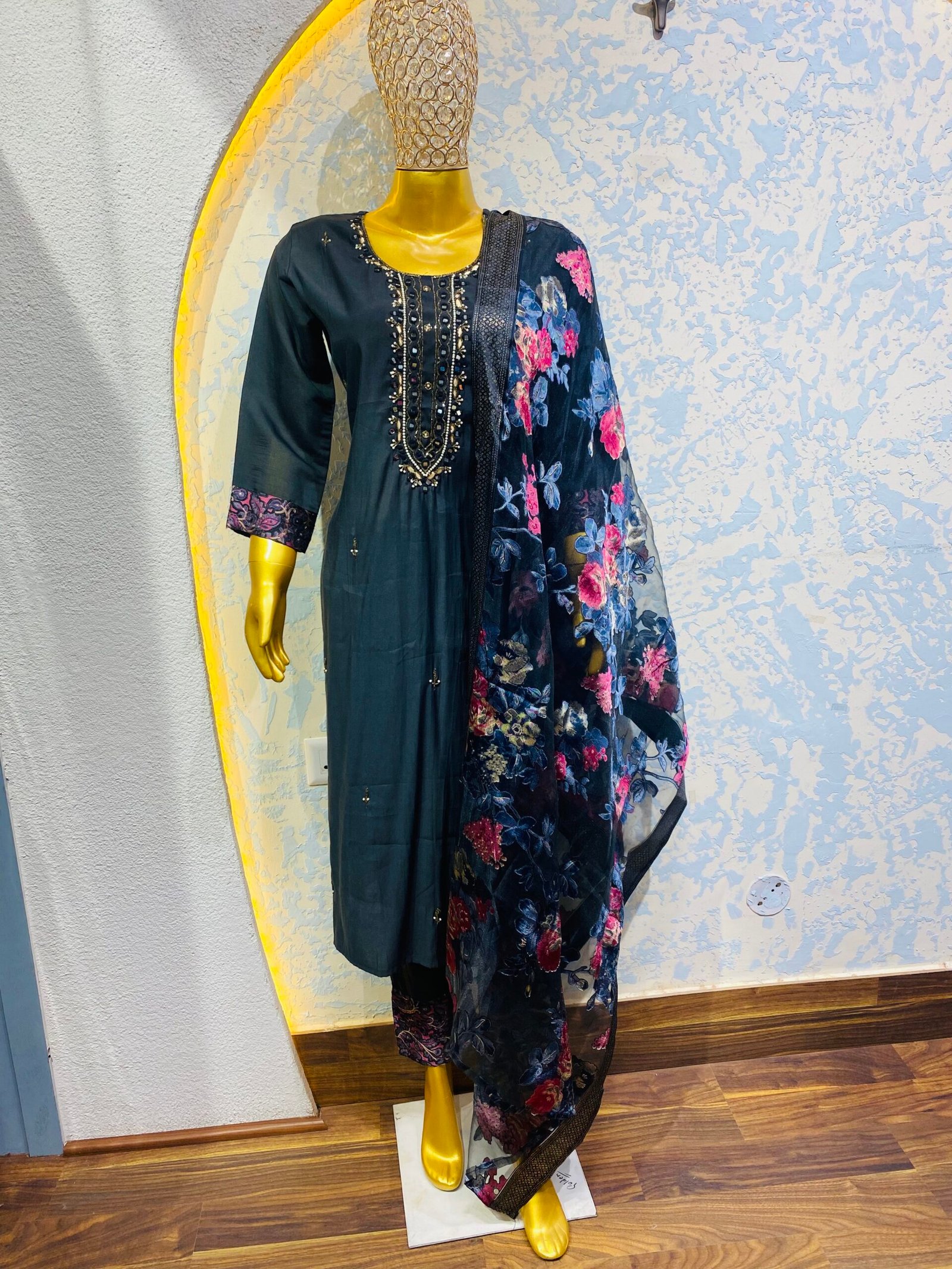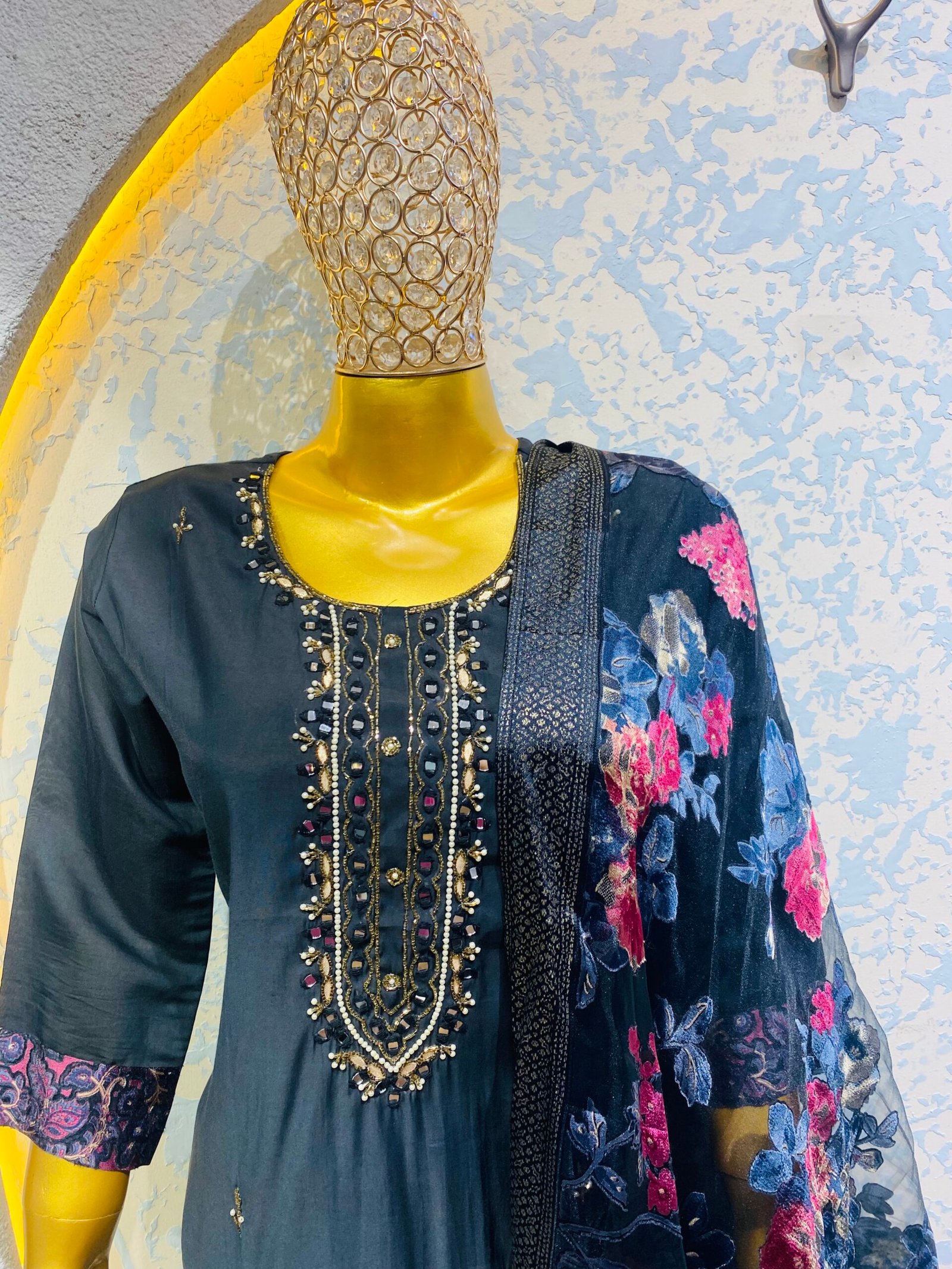 Tailored in a modern slim-cut silhouette, it balances sharp structure with a sophisticated edge. Whether it’s a high-stakes gala or a midnight wedding, this suit offers a sleek, futuristic take on classic evening wear.