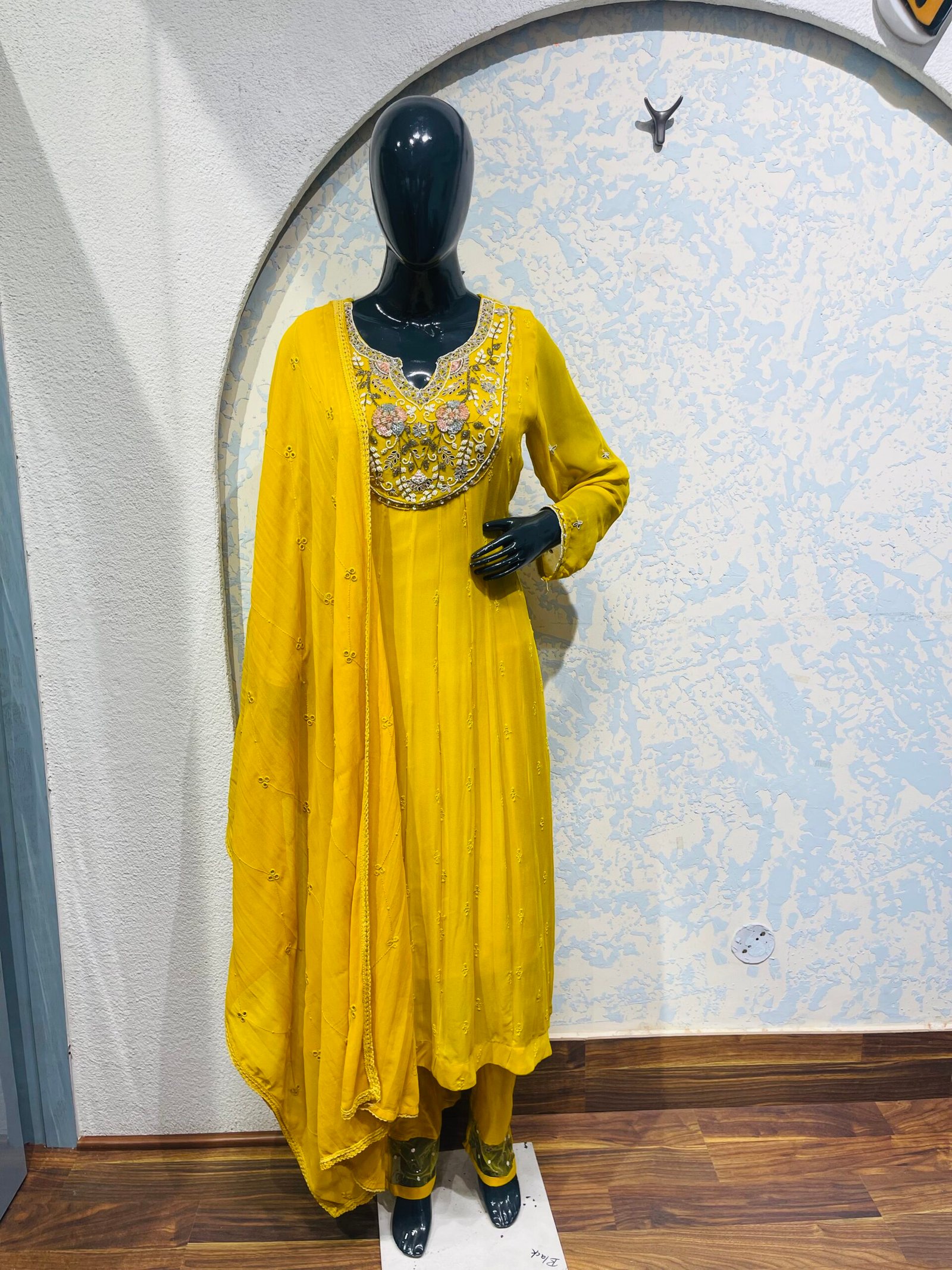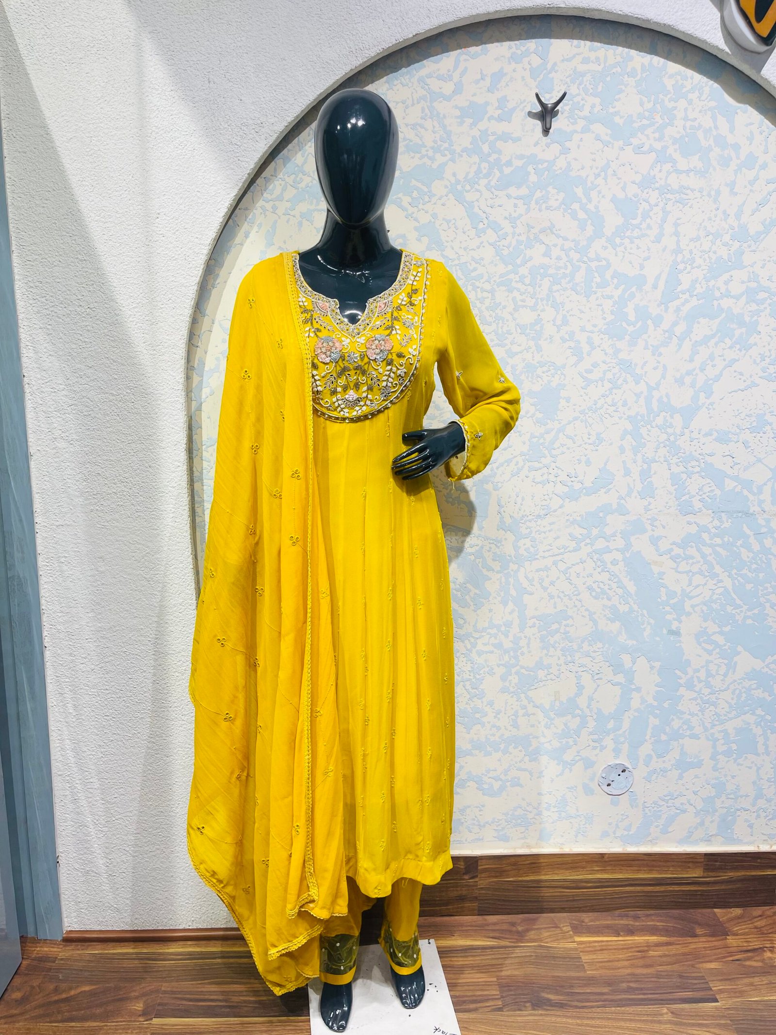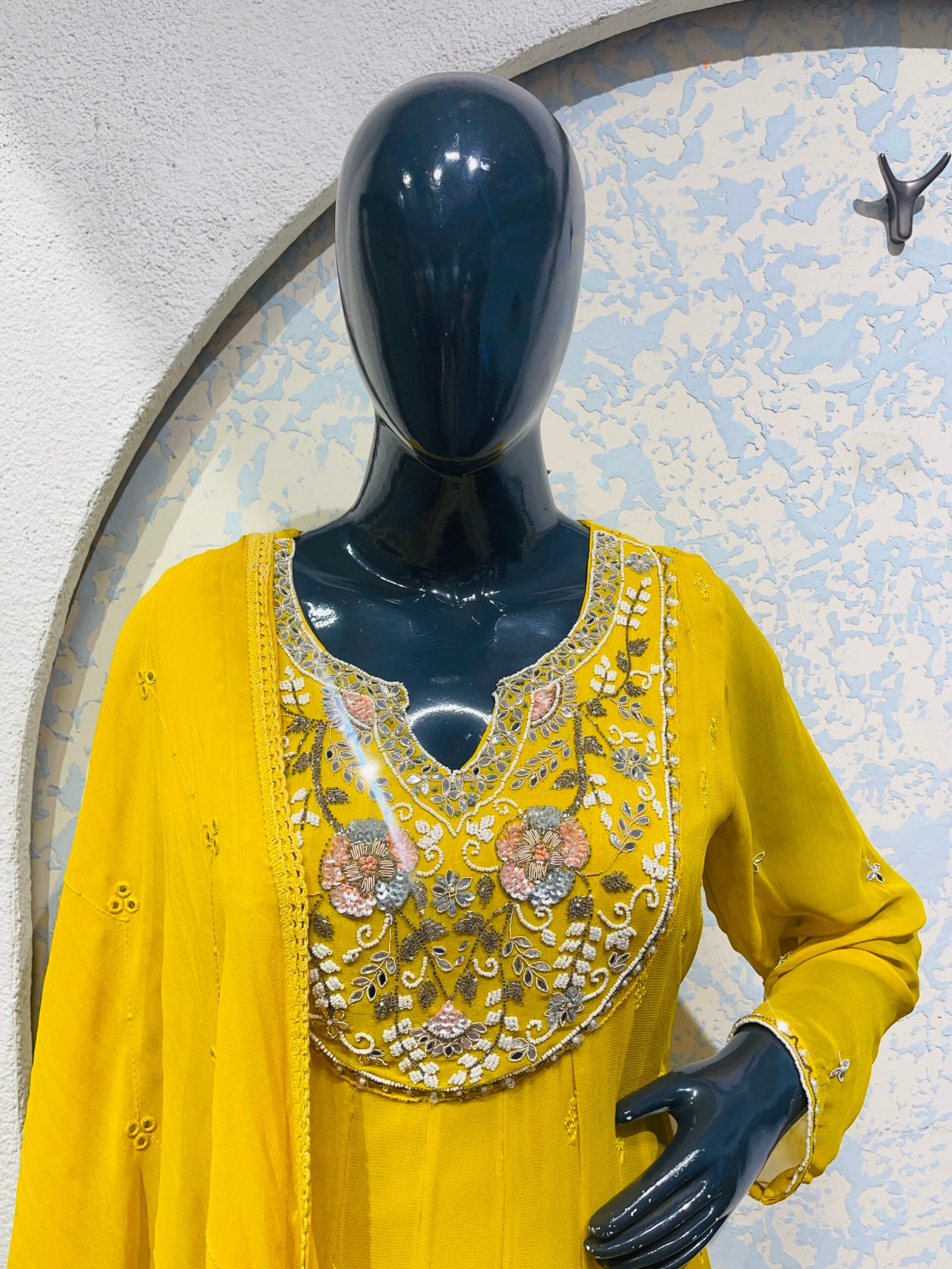 Round neck/patch work /Anarkali style moti, thread , mirror /embellished