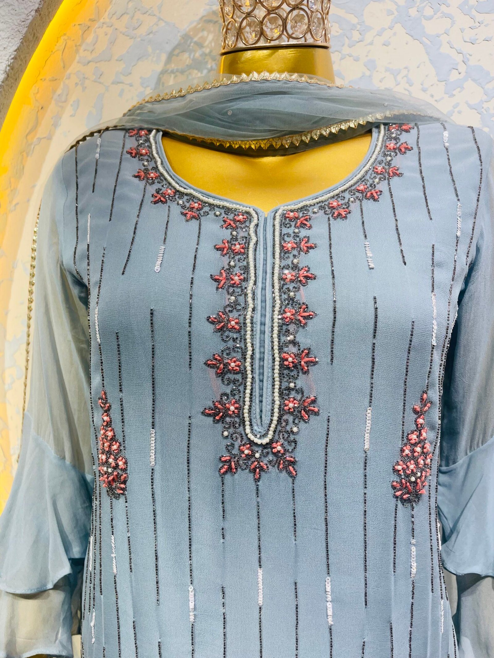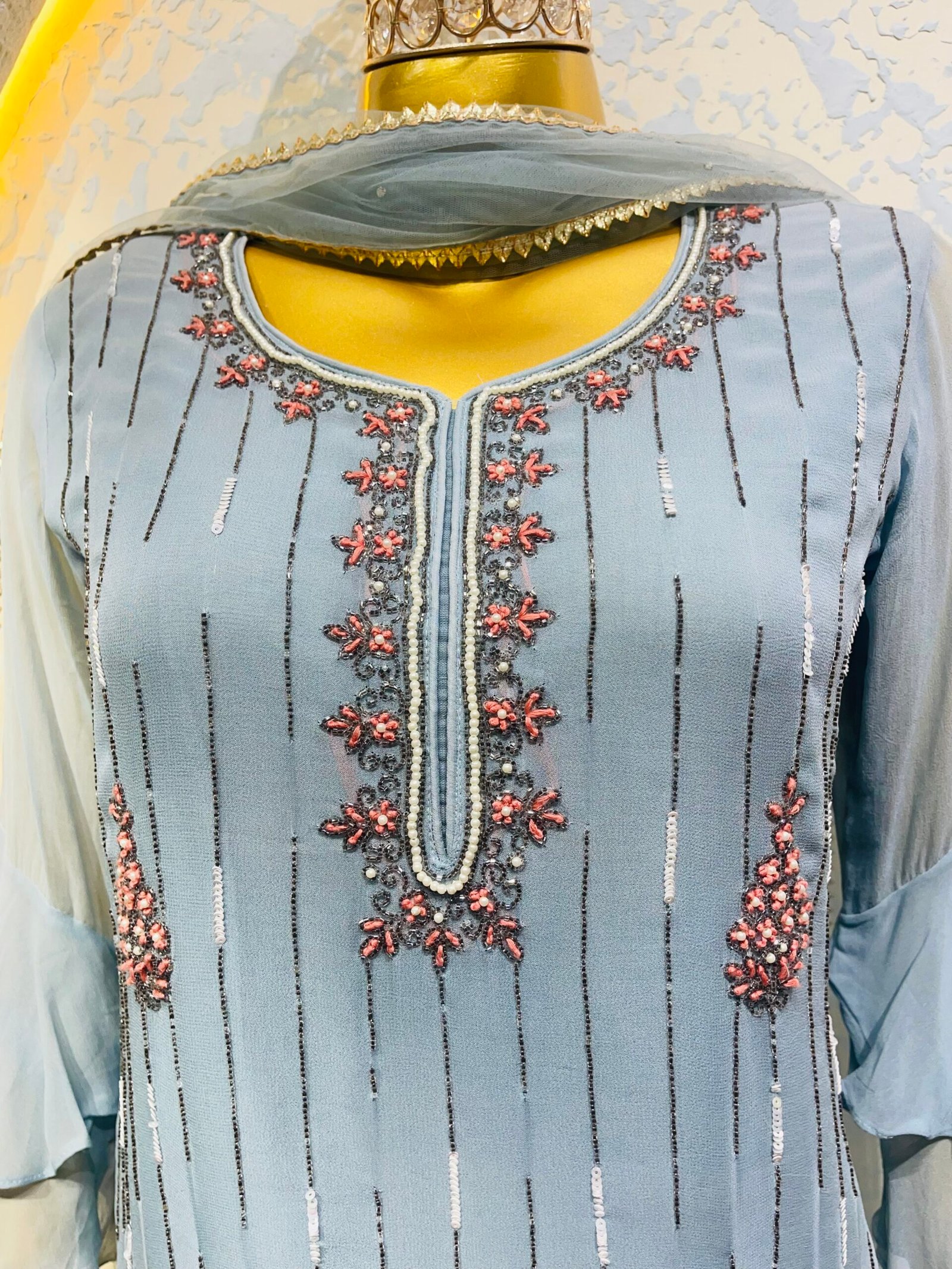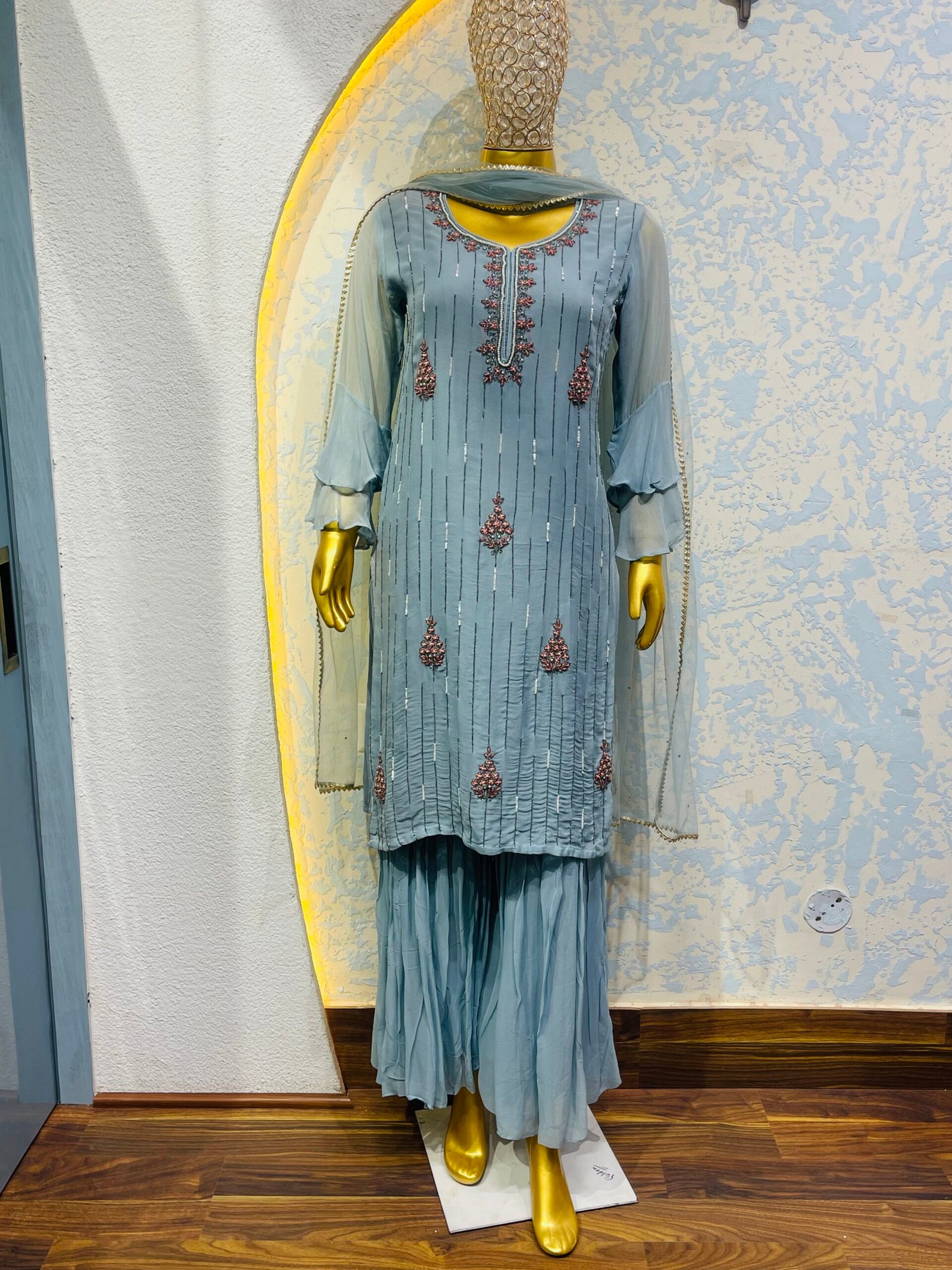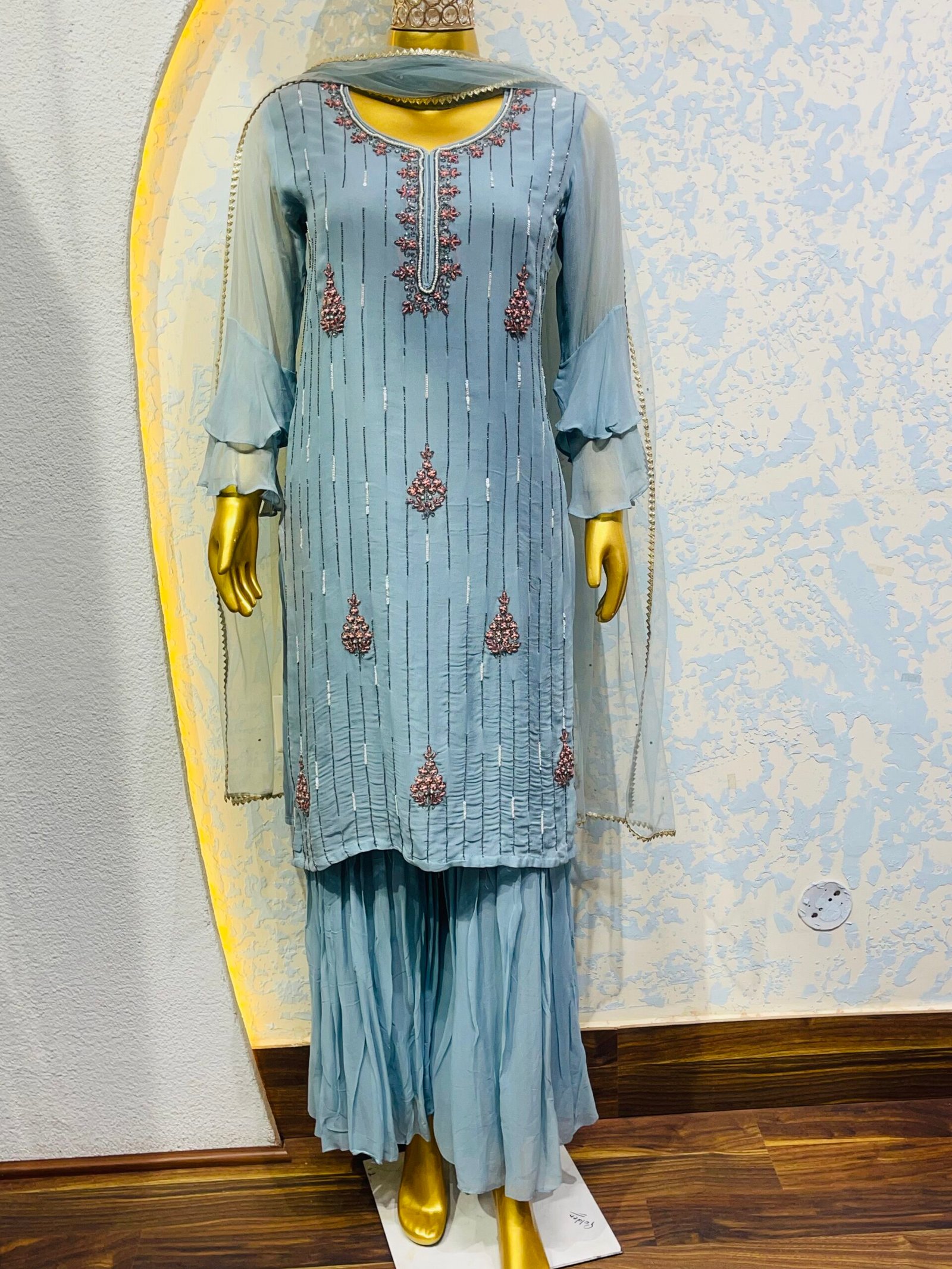 Be the first to review “Straight embellished with Gharara and dupatta” Cancel reply