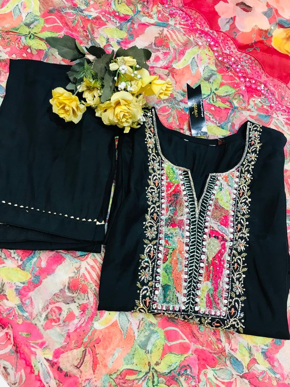 Embellished /thread and moti work on neck / cut work printed dupatta heavy suit
