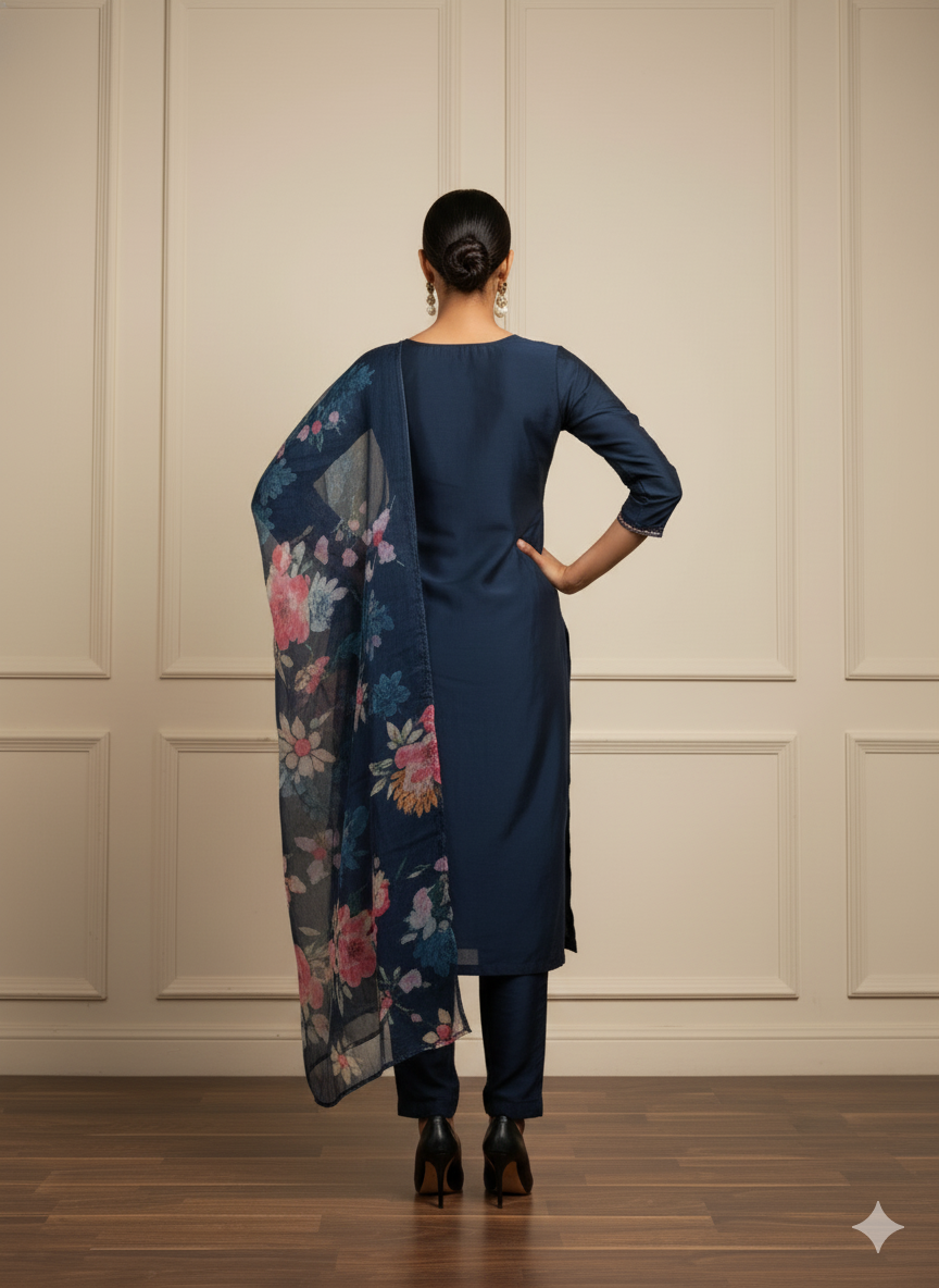Be the first to review “Blue heavy suit with organza dupatta” Cancel reply