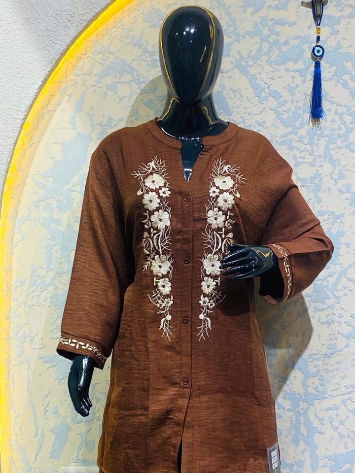 Be the first to review “Brown Floral Embroidered 2-Piece Cord Set (Size: 7XL)”