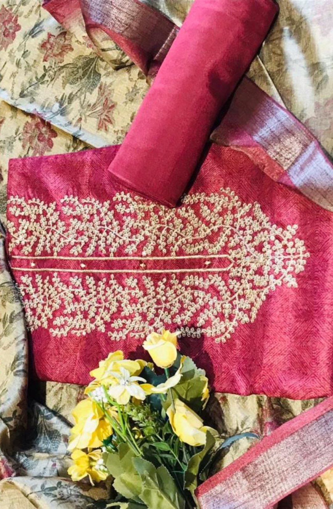 Premium Maroon Heavy Embroidered Unstitched Suit with Designer Floral Dupatta