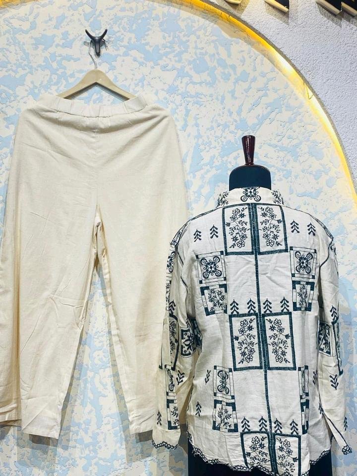 Elevate your everyday elegance with this sophisticated 3-piece co-ord set, designed for those who appreciate intricate craftsmanship and effortless style. Crafted from a premium, breathable fabric, this ensemble blends traditional motifs with a modern silhouette, making it a versatile addition to your wardrobe.