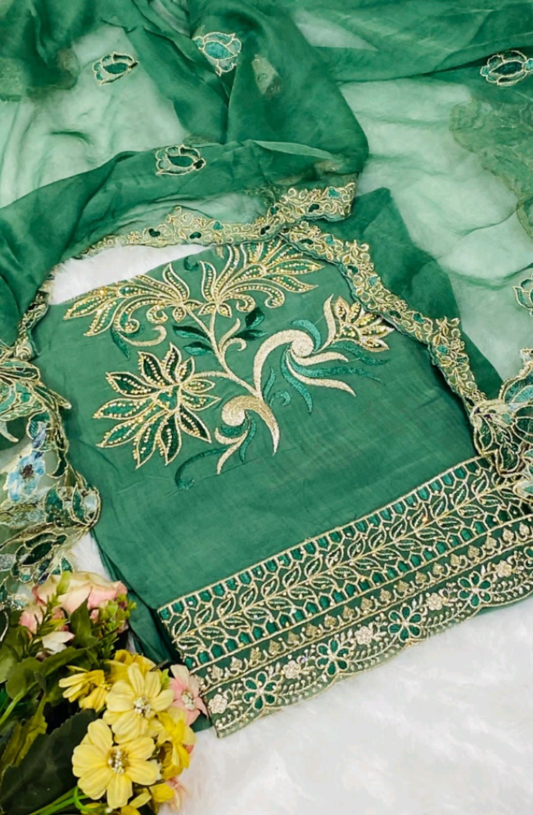 Organza Heavy Suit – Elegant Embroidered Unstitched Set