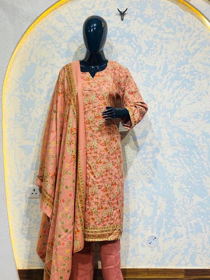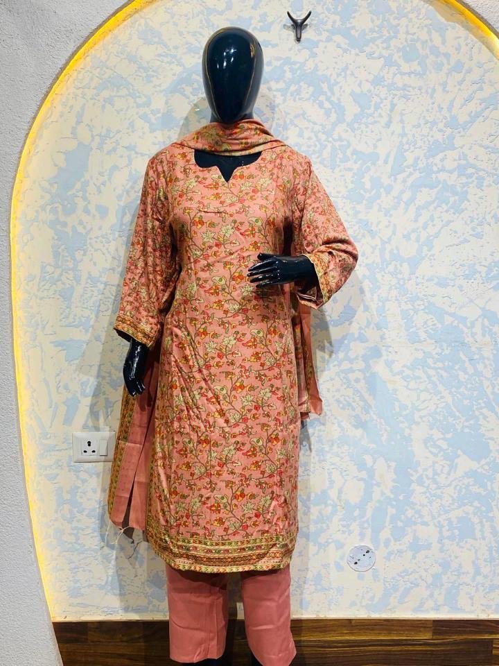 Elevate your winter wardrobe with this elegant and cozy Peach Woolen Suit. Crafted from premium, skin-friendly wool, this outfit features a sophisticated all-over floral print in earthy tones, perfect for both daily wear and special occasions during the colder months.