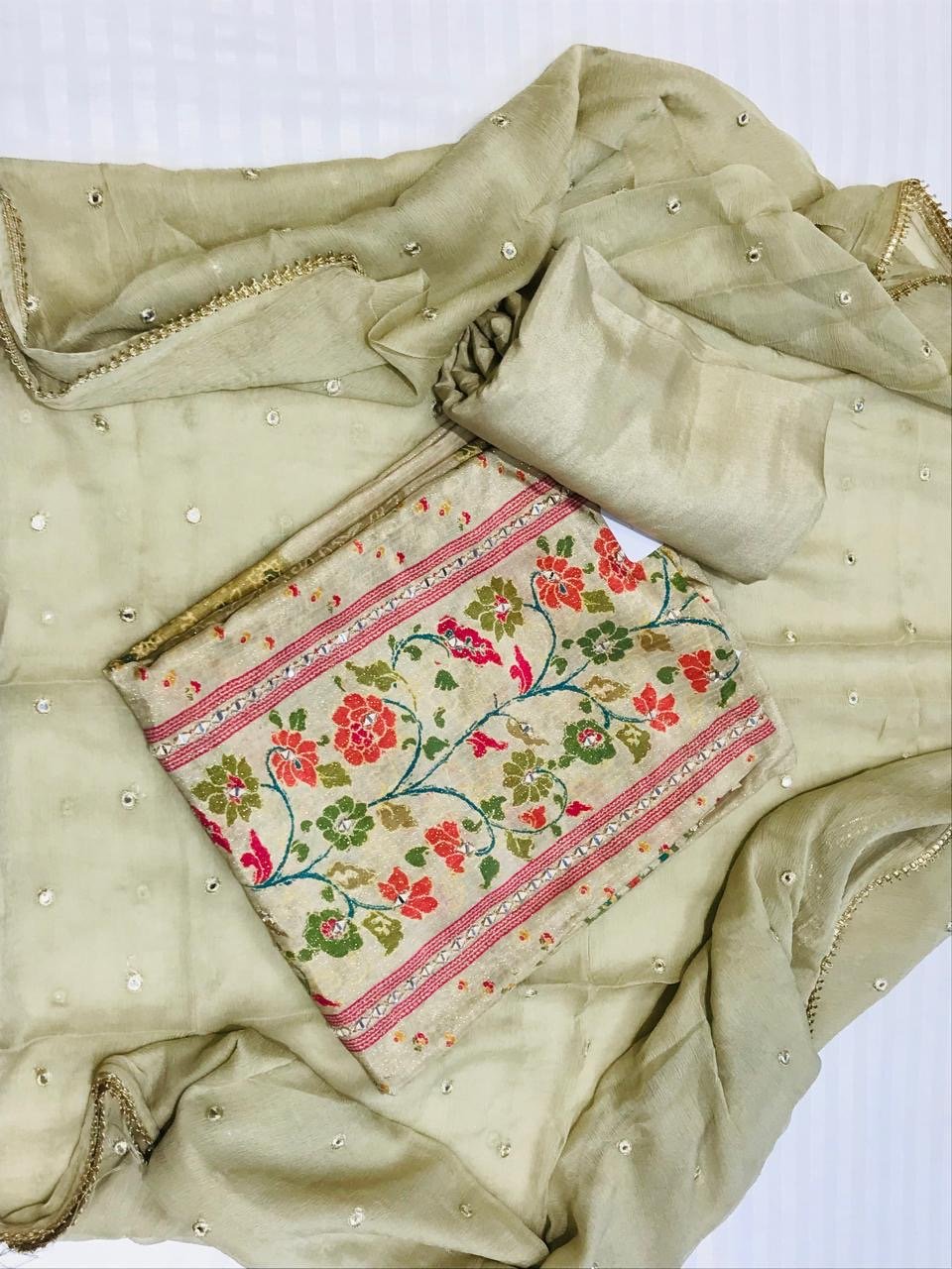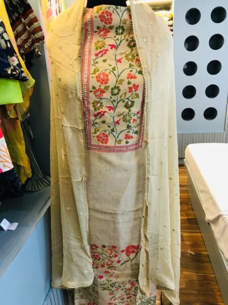 • Style: Unstitched 3-piece suit set (Kurta, Bottom, Dupatta).
