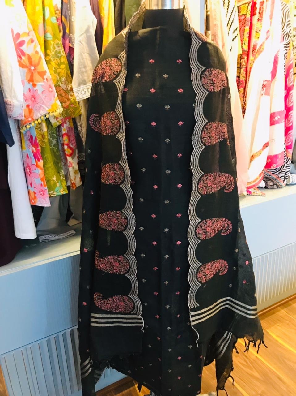 Be the first to review “Pure linen black thread work”
