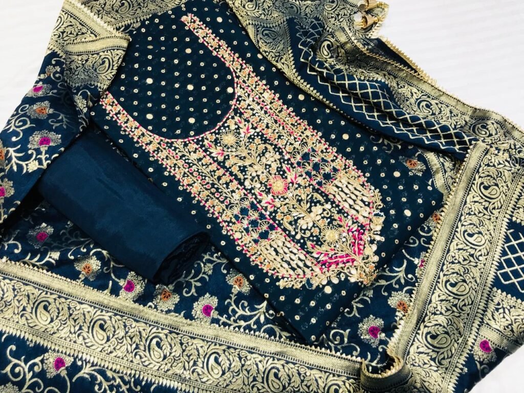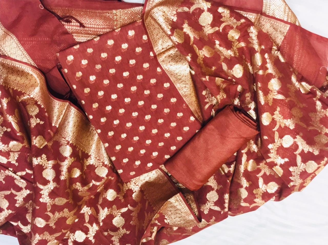 Be the first to review “Banarasi Mulmul Suit Set – Pure Zari Edition” Cancel reply