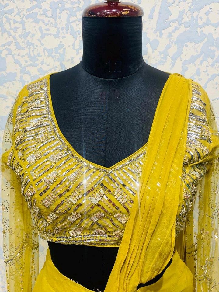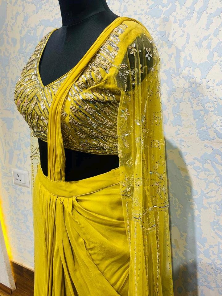 Radiant Mustard Yellow Sequined Drape Saree with Heavily Embroidered Blouse
