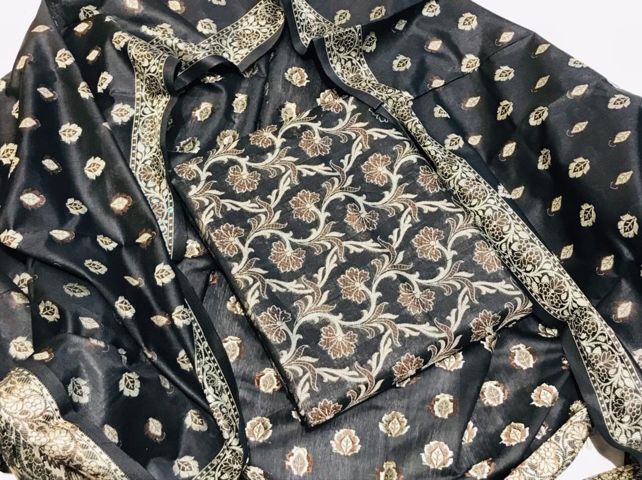 Be the first to review “Elegant Black Mussarie Cotton Printed Unstitched Suit Set” Cancel reply